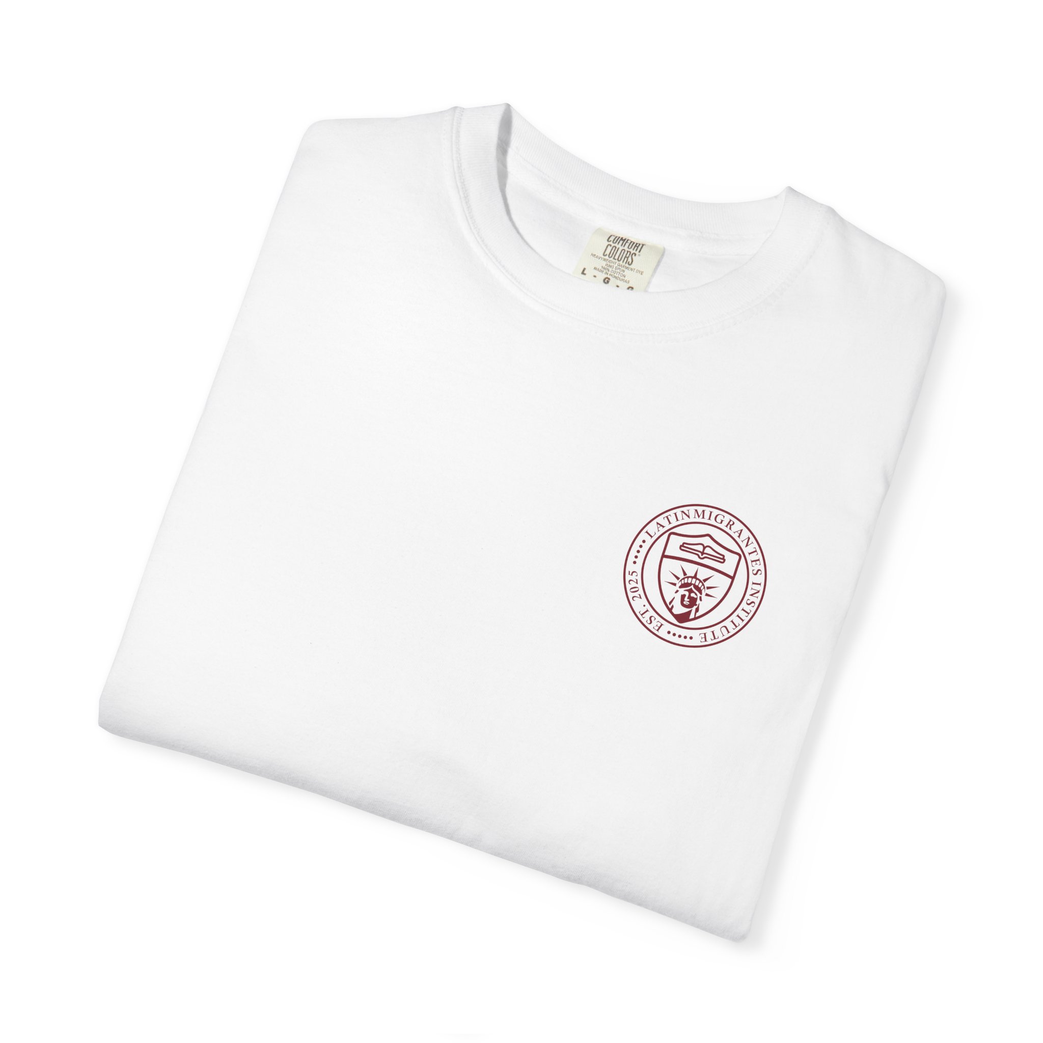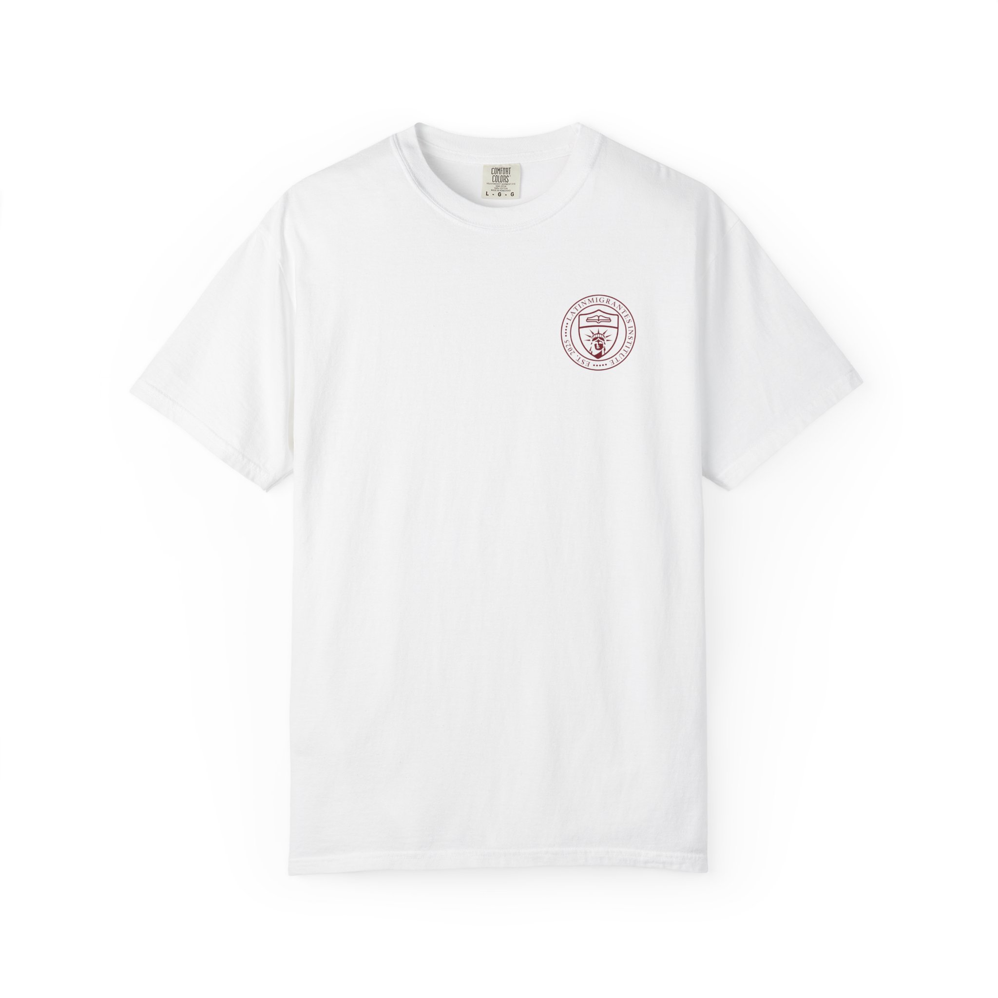 El pequeño sello del Latinmigrantes Institute en el pecho aporta un detalle discreto de inspiración universitaria, manteniendo una estética limpia y atemporal. Diseñada para el uso diario, esta camiseta desarrolla carácter con el tiempo mientras conserva su forma y comodidad lavado tras lavado.