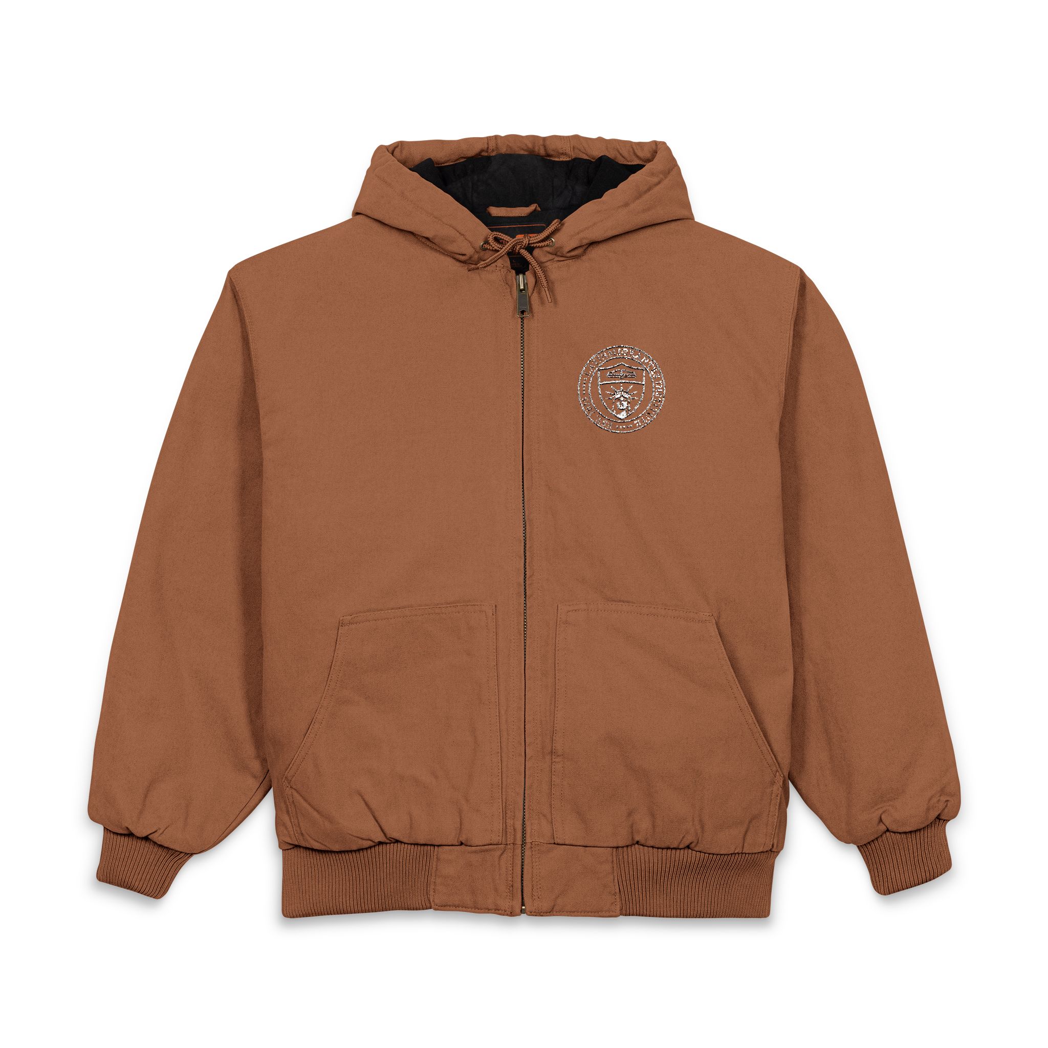 Una chaqueta resistente de inspiración heritage americana, diseñada para ofrecer abrigo, durabilidad y un estilo limpio para el día a día. Confeccionada en duck canvas de algodón pesado, mantiene su forma con el uso mientras se vuelve más cómoda con el tiempo. El escudo bordado en el pecho añade un detalle académico discreto que aporta identidad sin sobrecargar el diseño.