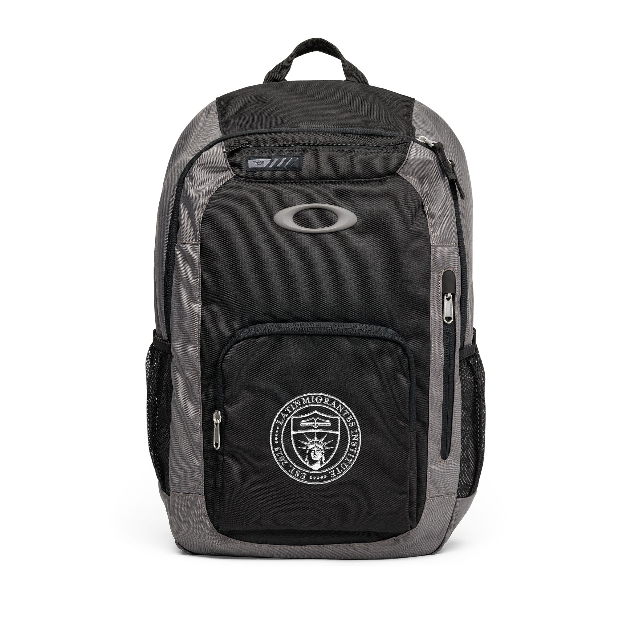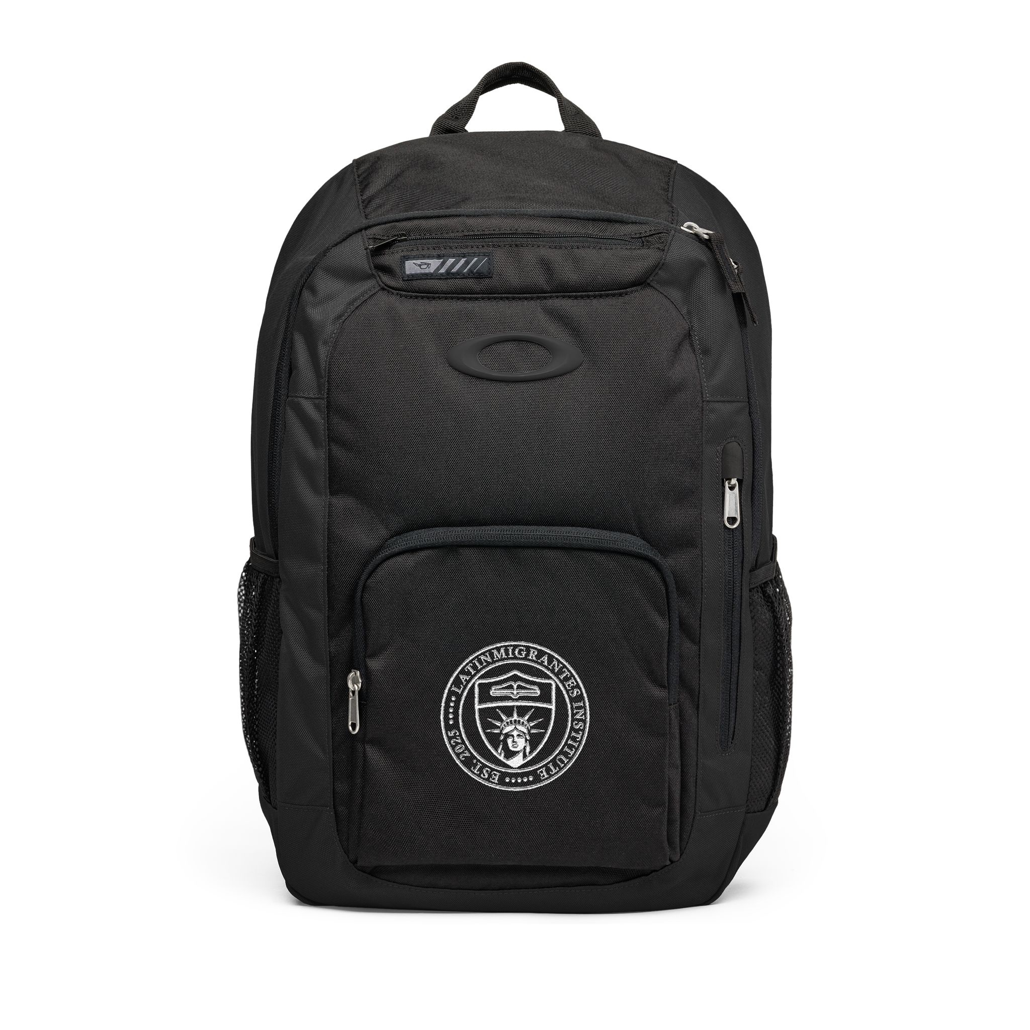 El panel trasero acolchado y las correas ergonómicas ofrecen comodidad durante jornadas largas, y el compartimento interno acolchado mantiene seguros portátiles de hasta 15". Un bolsillo forrado para gafas o dispositivos protege objetos delicados, mientras que los compartimentos exteriores y organizadores internos mantienen cables, cargadores y pequeños accesorios siempre a mano. El escudo bordado del instituto añade un detalle discreto y distintivo que refuerza su identidad académica sin perder un estilo limpio y funcional.