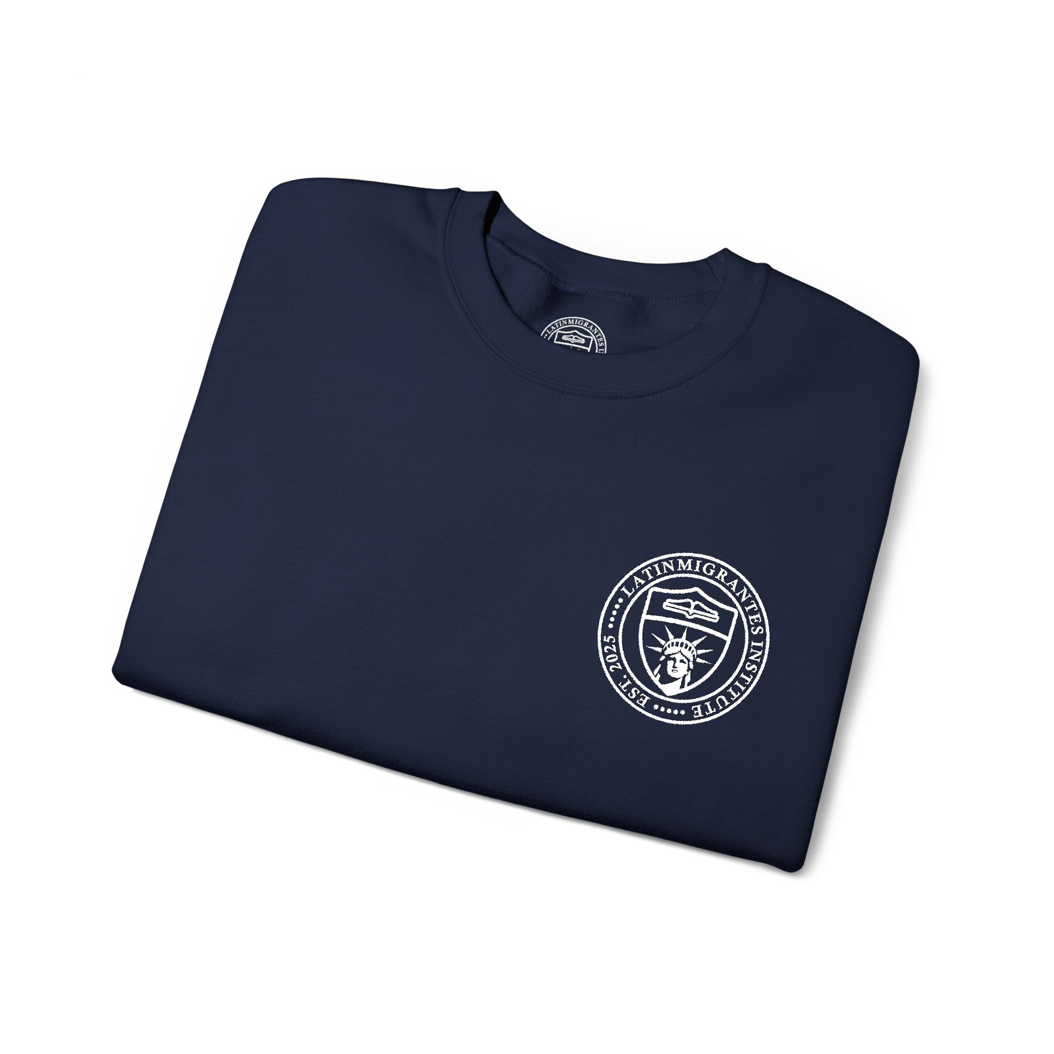 La Sudadera Oficial Latinmigrantes Institute — Emblem Crewneck combina comodidad, estilo universitario y un diseño bordado elegante que representa el espíritu académico del instituto. Su escudo bordado en el pecho aporta un acabado clásico y duradero inspirado en la tradición de las universidades, transmitiendo identidad, orgullo y compromiso con la educación.