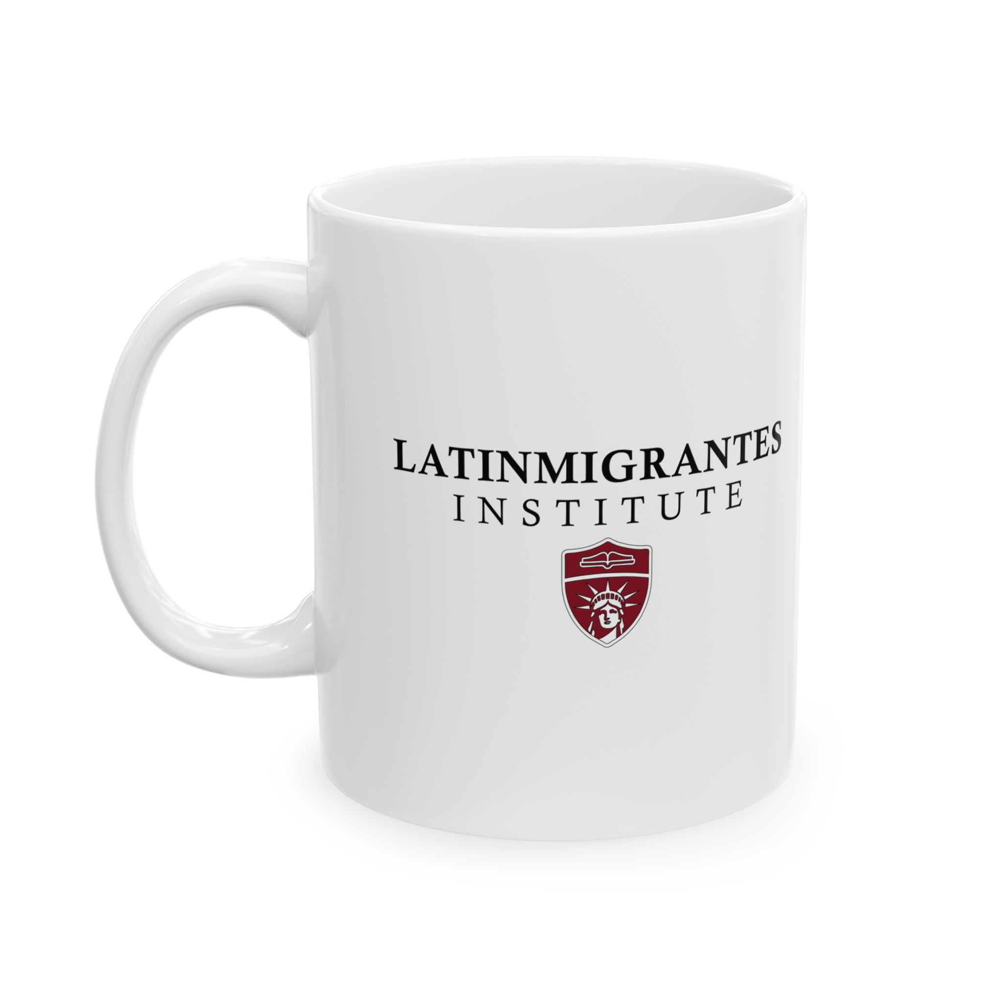 Esta taza de cerámica blanca presenta el nombre Latinmigrantes Institute acompañado por el escudo institucional, creando un diseño limpio y académico que refleja identidad, conocimiento y propósito. El contraste entre la tipografía elegante y el sello del instituto le da una presencia sobria y profesional, ideal para el escritorio, la oficina o una mesa de estudio.